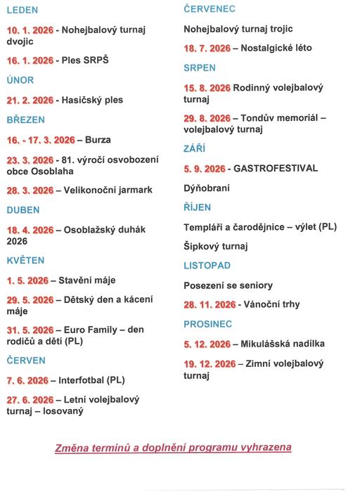 Úvod > Obec > Aktuality > Plán akcí na rok 2026